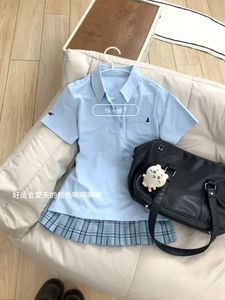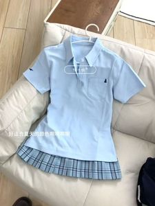 JK 制服オリジナル本物のポロシャツ夏の新日本カレッジスタイルルーズブルー半袖スクールトップ