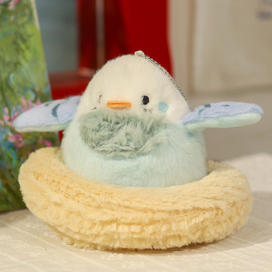 肩に立っている小鳥のぬいぐるみが肩に横たわっている磁気人形のぬいぐるみのぬいぐるみ