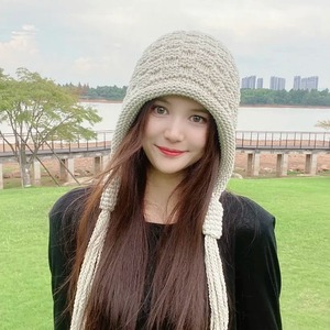 秋冬の女性用タッセルウール帽子韓国風暖かい耳保護赤いニット帽甘くて多用途なプルオーバー帽子防寒帽子