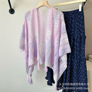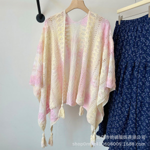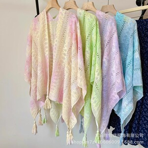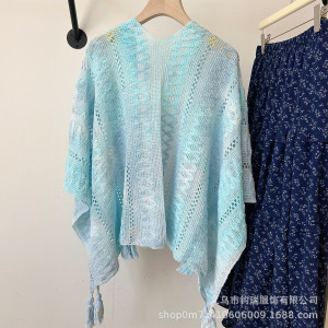 2025年新作 ケープ 春夏 薄手 チョッキ ショール レディース ニット 透かし彫り 民族風 文芸風 多用途 グラデーションカラー