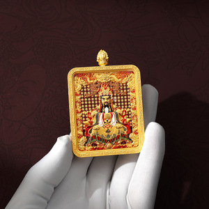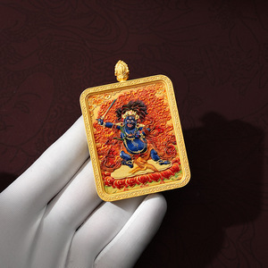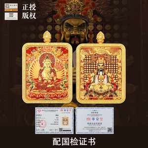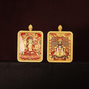 正版授権真鍮レリーフ八大守護神唐卡仏牌ペンダント龍五爺両面ストラップ普賢菩薩
