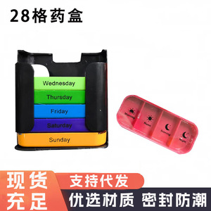 国境を越えた週7日、1日4回、28コンパートメントの大容量ポータブルピルボックス、防水薬収納ボックス