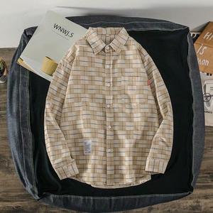 2025秋チェック柄ハンサム香港スタイル新しい男の子シャツ韓国スタイルルーズトレンディ長袖カップル着用怠惰なスタイル