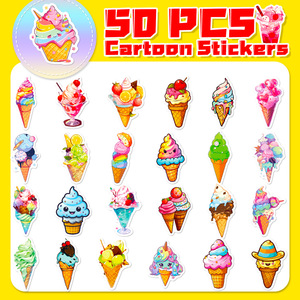 50张缤纷甜筒贴画ins风夏日甜筒巧克力冰激凌粉嫩可爱风涂鸦贴纸