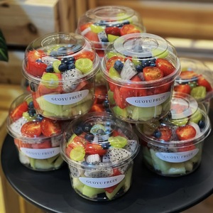 胖东同款果切杯一次性水果杯果切盒沙拉水果捞打包盒子带盖厂家