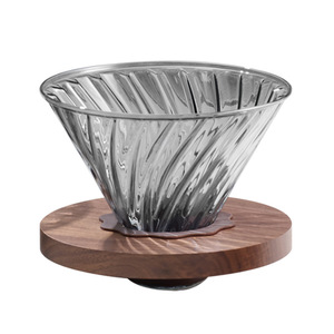 手淹れコーヒーフィルターカップ V60 スパイラルフィルターシリコンウォールナットホルダー取り外し可能なカップホルダーガラスドリップ漏斗