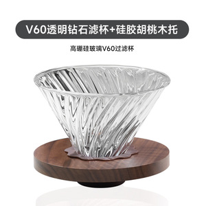 V60透明ダイヤモンドフィルターカップ+シリコンウォールナットウッドホルダー