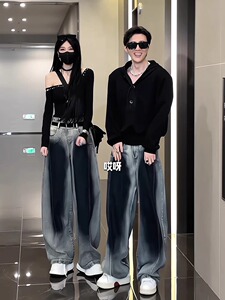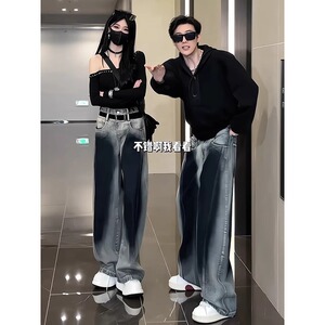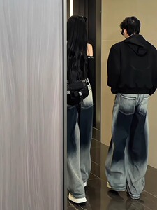 水洗渐变复古蓝牛仔裤男夏季潮牌牛仔裤子美式高街直筒牛仔裤百搭