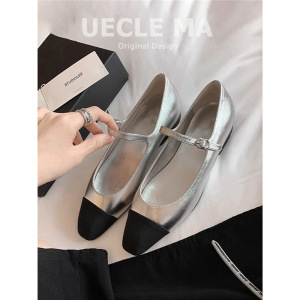 シープスキン〜フレンチシングルシューズレディースシルバー2025春新作本革スモールフレグランスフラットシューズイブニングシューズメリージェーンシューズ