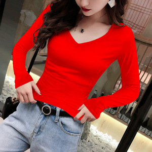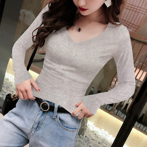 春と秋の女性用Vネックボトリングシャツ、スタイリッシュな高品質の秋服、右肩スリム長袖ハートネックTシャツ、トレンディ