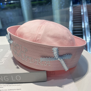 かわいい KT 猫セーラー帽子女性の新しい弓ホットダイヤモンド盆地帽子ミレニアムホットガールフリップつばネイビーベレー帽トレンディ