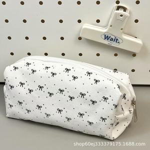 シンプルな黒のリボン鉛筆バッグイン高価値かわいい女子学生化粧品バッグ大容量文具収納袋