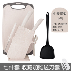 完全なセット - 中小麦ボード + 包丁 + フルーツナイフ + メロンカンナ + ハサミ + ナイフホルダー + シリコン黒ヘラ