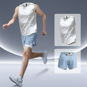 スポーツランニングスーツメンズマラソンアイスシルク速乾ベスト夏陸上トレーニングショーツフィットネス服と機器