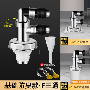 洗濯機排水管、床排水専用継手、排水管、防臭・こぼれ防止、浴室用ツーインワン三方カバー