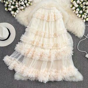 2025 ニッチフェアリー雰囲気ロングスカート韓国風シンプルメッシュスプライシングレイヤードケーキレイヤードスカート
