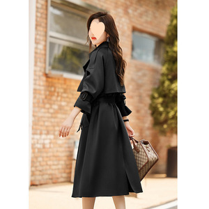 トレンチコートレディースミディアムロング2025年秋新作ファッション高級感カジュアルゆったり気品トレンドコートアウター