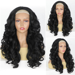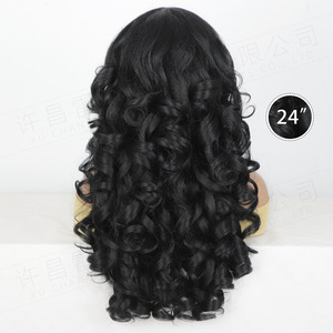 欧美假发女黑色蓬松yaki假发长卷发卡子发半头套 Half-head cover