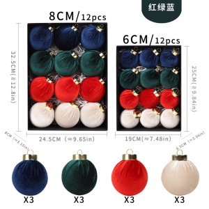 クロスボーダー新製品ベルベットクリスマスボール 6 センチメートル/8 センチメートルクリスマスボールセットクリスマスツリーペンダントクリスマス装飾用品