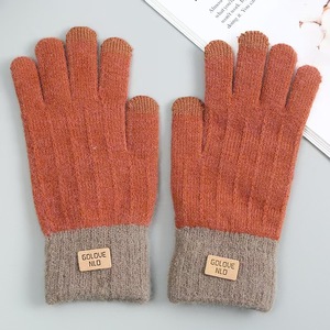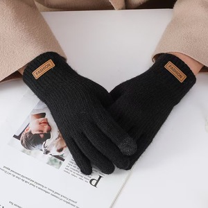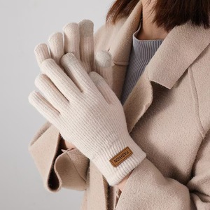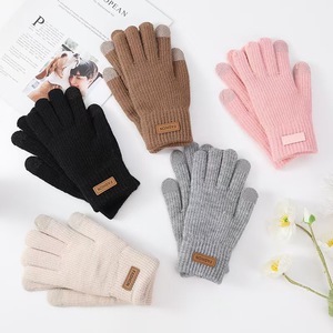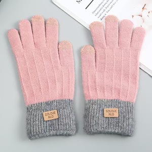 女性用冬用手袋、ベルベットで厚く、5本指の学生、かわいいニットの防寒サイクリング、タッチスクリーンの暖かいサイクリンググローブ