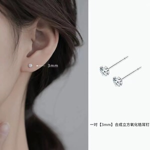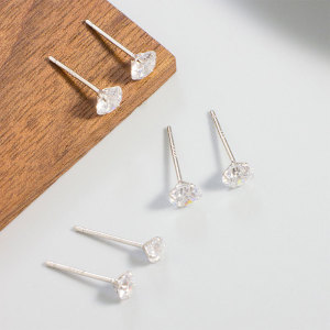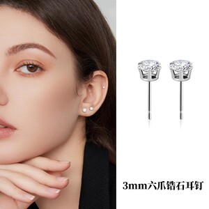 3mm 6 本爪ジルコン スタッド ピアス - シルバー 925
