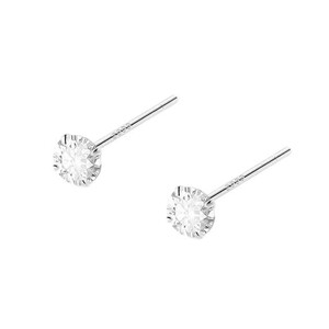 4mm 6 本爪ジルコン スタッド ピアス - シルバー 925