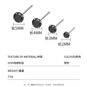 s999四爪ジルコン純銀イヤリング レディース シンプルスタイル 多用途 耳骨ピアス 就寝時も外す必要なし 純銀999