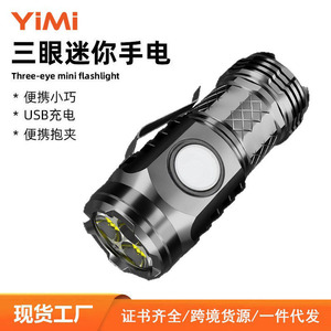 国境を越えた充電式多目的長距離小型鋼砲ポータブル超高輝度家庭用ミニ三眼ランプリトルモンスター懐中電灯