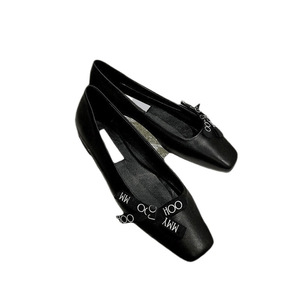 JC 新 2025 レターリボンガールピンクシングルシューズ女性のスクエアトゥニッチデザイン浅い口フラットバレエシューズ
