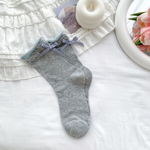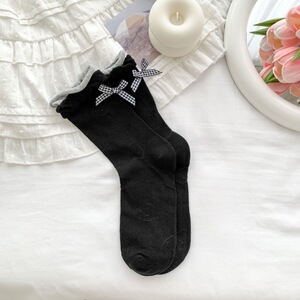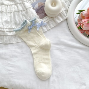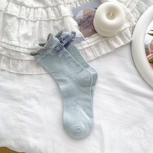 2025 春夏新日本のかわいい漫画中空犬ミッドカーフソックスヒールチェック柄リボンパイル女性の靴下
