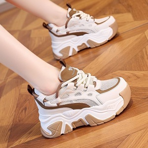 2025 夏の新スタイルインナー高さメッシュカラーマッチングお父さん靴厚底ウェッジカジュアルスポーツシューズ学生靴女性の靴