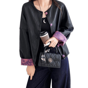 禅意风国风磨砂拼接皮衣外套女2025新款气质休闲皮高级感中式上衣