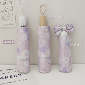 ✅ 紫色の油絵花柄日傘全自動傘ビニール日焼け止め抗紫外線晴雨兼用折りたたみ傘承認可能