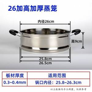 スチールハンドル-26高さと厚みのある蒸し器(高さ9cm)