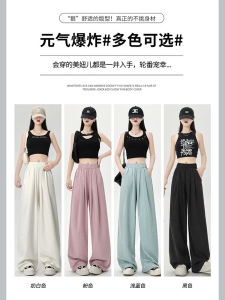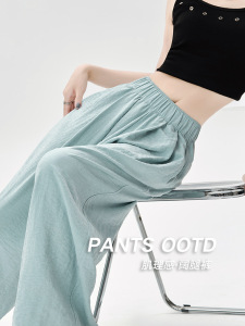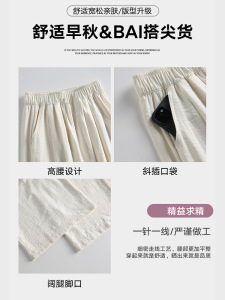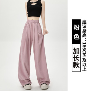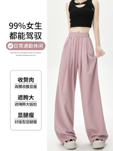 ピンクの質感のレイジーミルクフー山本カジュアルパンツレディースハイウエストスリムルーズスライドクラウドパンツ