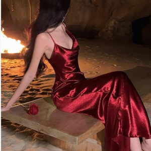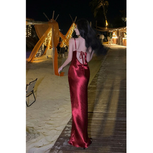 名媛气质鱼尾晚礼服长裙女夏氛围高级包臀法式醋酸缎面吊带连衣裙