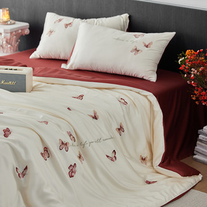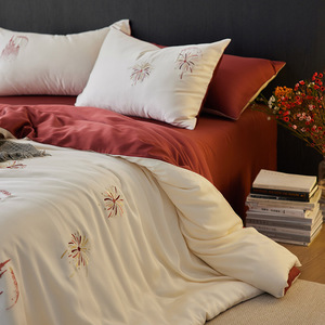 夏用60年代テンセル4点セット、軽い高級感、A級刺繍、肌に優しい裸寝シーツ、掛け布団カバー、涼しいシルク夏用南通
