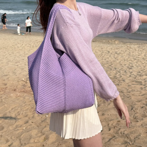 クロスボーダー暗号化ドロップシッピング女性用ニットバッグ、大容量トートバッグ、女性用ニットバッグ、ビーチバッグ、ショルダーバッグ、ポータブル
