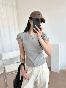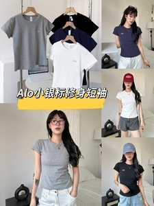 原標Alo小銀標アルファベットプリント丸首半袖修身痩せ運動百合ヨガ正肩上着tシャツ