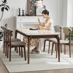 北欧の純粋な天然大理石無垢材のダイニングテーブル家庭用小さな長方形の白い氷翡翠の高級石のダイニングテーブルの組み合わせ
