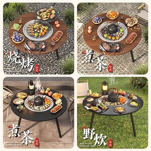 屋外ティーボイラー、中庭無煙バーベキュー、丸型便利な収納テーブル、木炭バーベキューグリル、暖房ストーブ