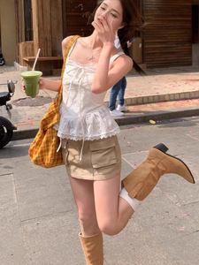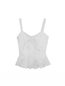 フレンチホワイトキャミソールレディース春夏新作レーススイートスリムショートニッチデザインノースリーブトップ