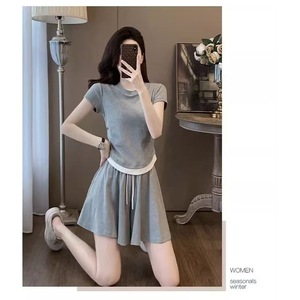 女性のためのカジュアルスポーツウェアスーツ 2025 新しい夏ルーズランニングソルト半袖ショーツスカートツーピースセットドロップシッピング