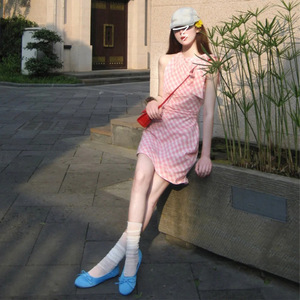 ピンクのチェック柄のリボンホルターネックドレス女性の夏の純粋な欲望ホットガール不規則なショートスカートウエストカバーヒップスカート