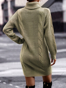 Amazon クロスボーダーサプライ 2024 秋冬ソリッドカラーハイネック長袖ヒップカバーセーターレディースドレス