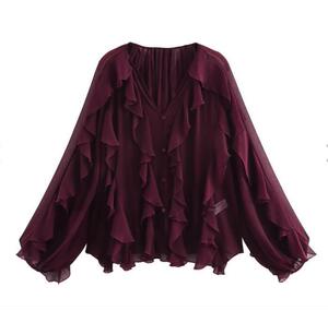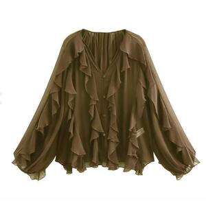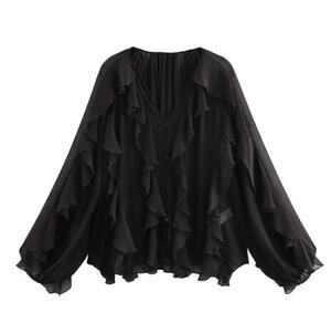 BSK&TRAF女装2025年夏季新款现货 潮流长袖叠层装饰衬衫4786063