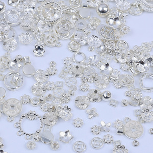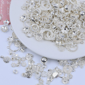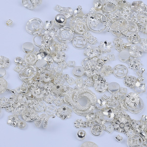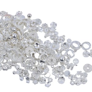 100種類の光沢のある銀合金製スペーサービーズ、フラワーホルダー素材パック、手作りブレスレット、編み込みアクセサリー、卸売