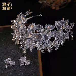 新しいハイエンドの豪華な光沢のあるシルバーグレーのクリスタルヘビーデューティクラウンブライダルウェディングドレスヘッドドレスハイエンドウェディングクラウン