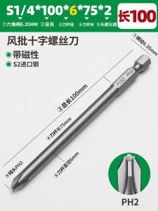 加长十字S2风批六角批头磁性气动起子头1/4电动螺丝刀电批头套装