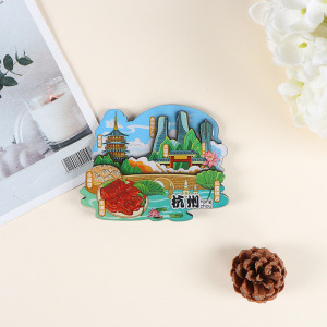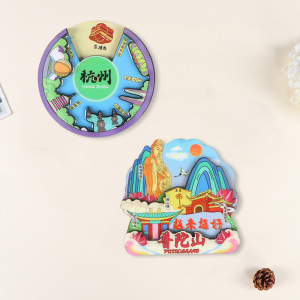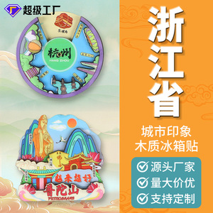 浙江木製都市冷蔵庫マグネットカスタム杭州普陀山文化創造磁石ホームデコレーション旅行記念品
